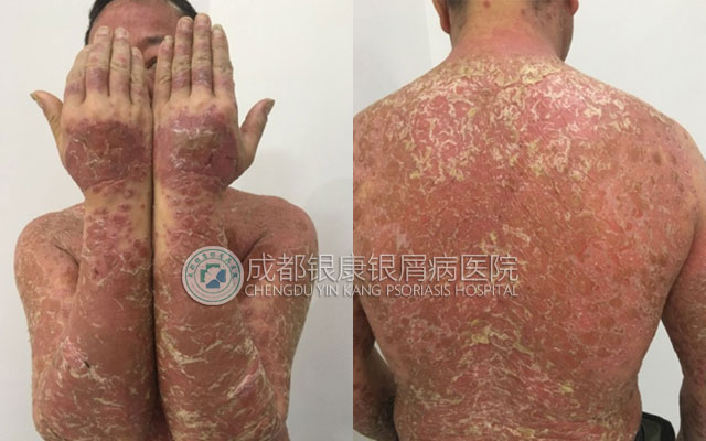 导致周先生的病情急速发展,成为急性进行期,主要是因为他是先并不知道自己患的是银屑病,等到病情扩散时,去医院检查才知道是银屑病。确诊为银屑病后,满身红斑、难耐的瘙痒、异样的眼光种种都让他无法在正常工作,开始四处寻医问药,多年下来,周先生花光了所有的积蓄,而病情却始终不见好转,他绝望到不想在继续下去。